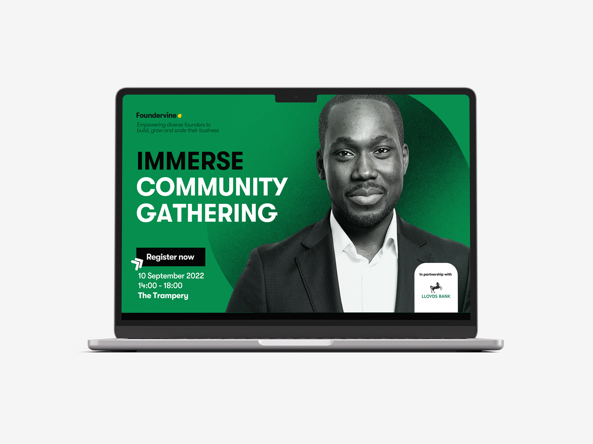 Foundervine partnered with Lloyds to create the 'Immerse' partnership. I created a key visual which was used to create a landing page and social assets.