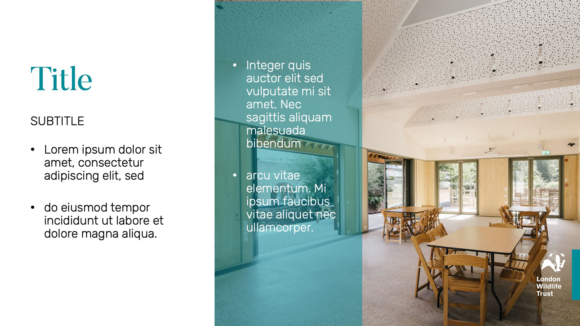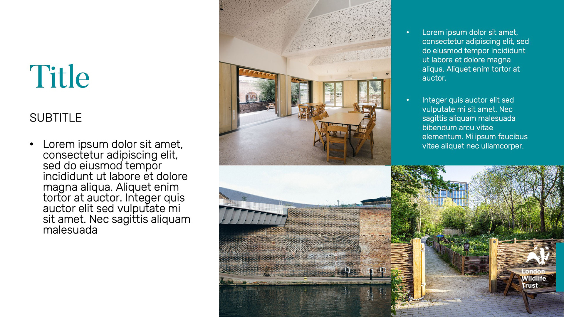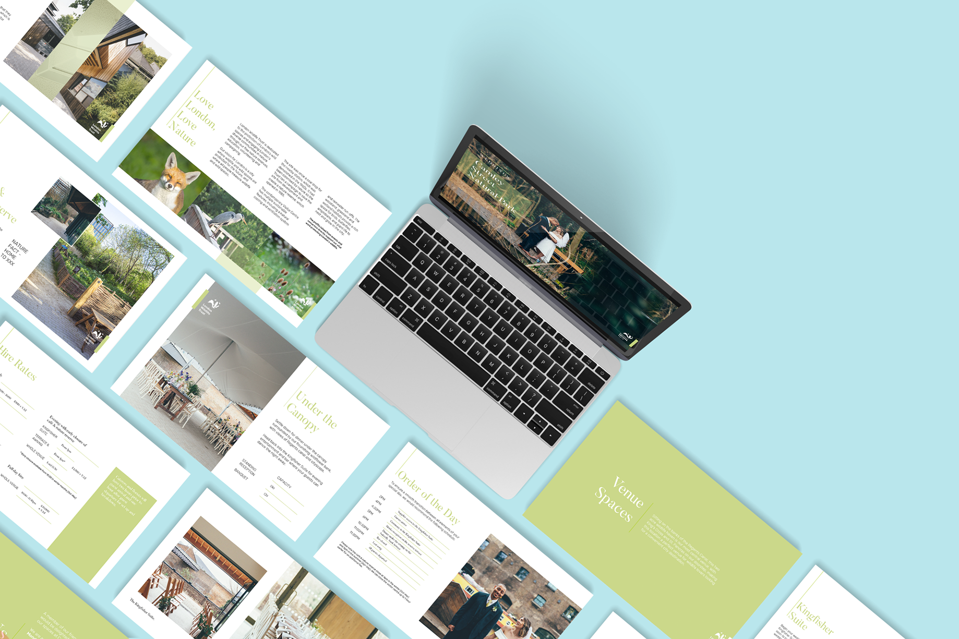 I created bespoke presentation materials for the Weddings & Events department of the London Wildlife Trust, aligning their message with the natural beauty of their venues. The goal was to convey a clean, fresh feel that reflected the elegance of their wedding services and the tranquility of their event spaces.